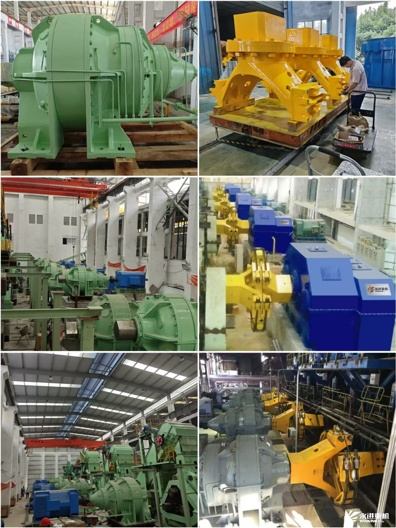 ●分流平行軸結構:減速比可達到200。采用左右分流結構,裝配時調整同步,確保使用過程中的均載。具有精度高、噪音低、效率高、維修方便等優點。