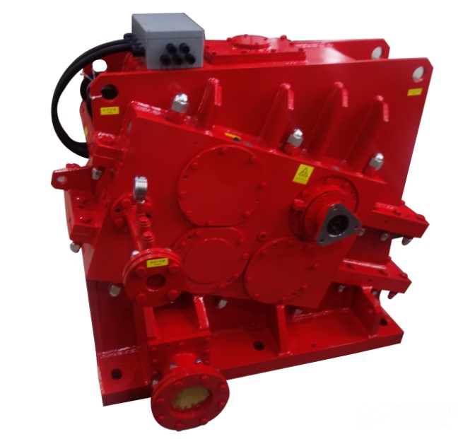 該產品主要用于航空領域試驗臺,該領域產品之前均采用國外進口齒輪箱,而該產品成功實現了同類型進口齒輪箱的替代。該齒輪箱摒棄了原進口產品的外部油路,全部改為內部油路,內部結構緊湊、外觀簡潔、輕便、美觀;結構布局為單輸入、雙輸出水平布置;齒輪箱輸出轉速30000rpm、輸出扭矩770NM、齒輪線速度135m/s、單級傳動效率99%,具有高輸出轉速、高輸出扭矩、高線速度、高效率等優點。該產品作為我司在航空領域試驗臺的一次突破,為后續潛在的客戶提供一個優秀的樣本。